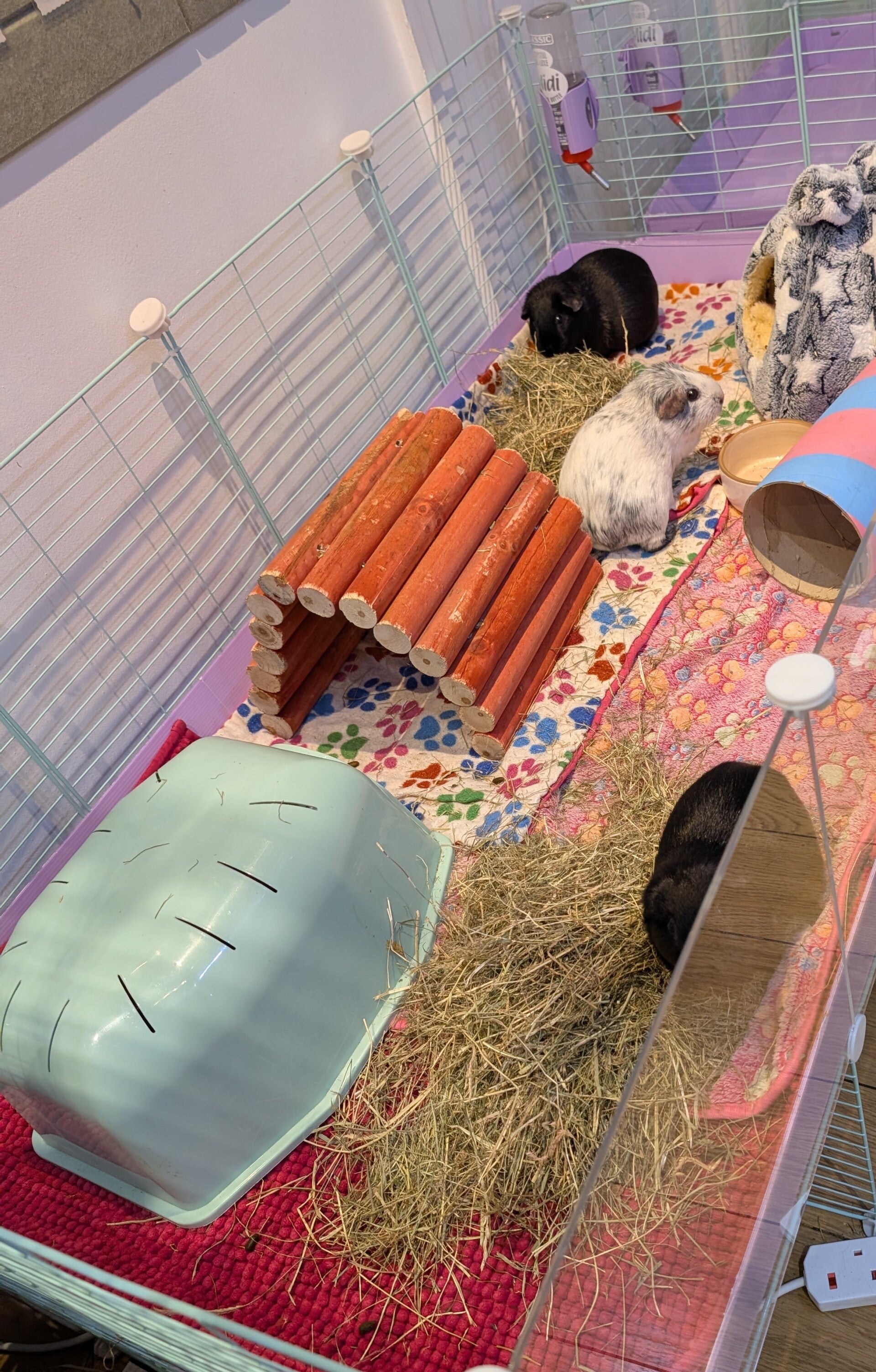 Large, secure enclosures (minimum 5ft x 2ft for a pair, larger is always better) we may request larger enclosures depending on the guinea pigs you are interested in adopting.